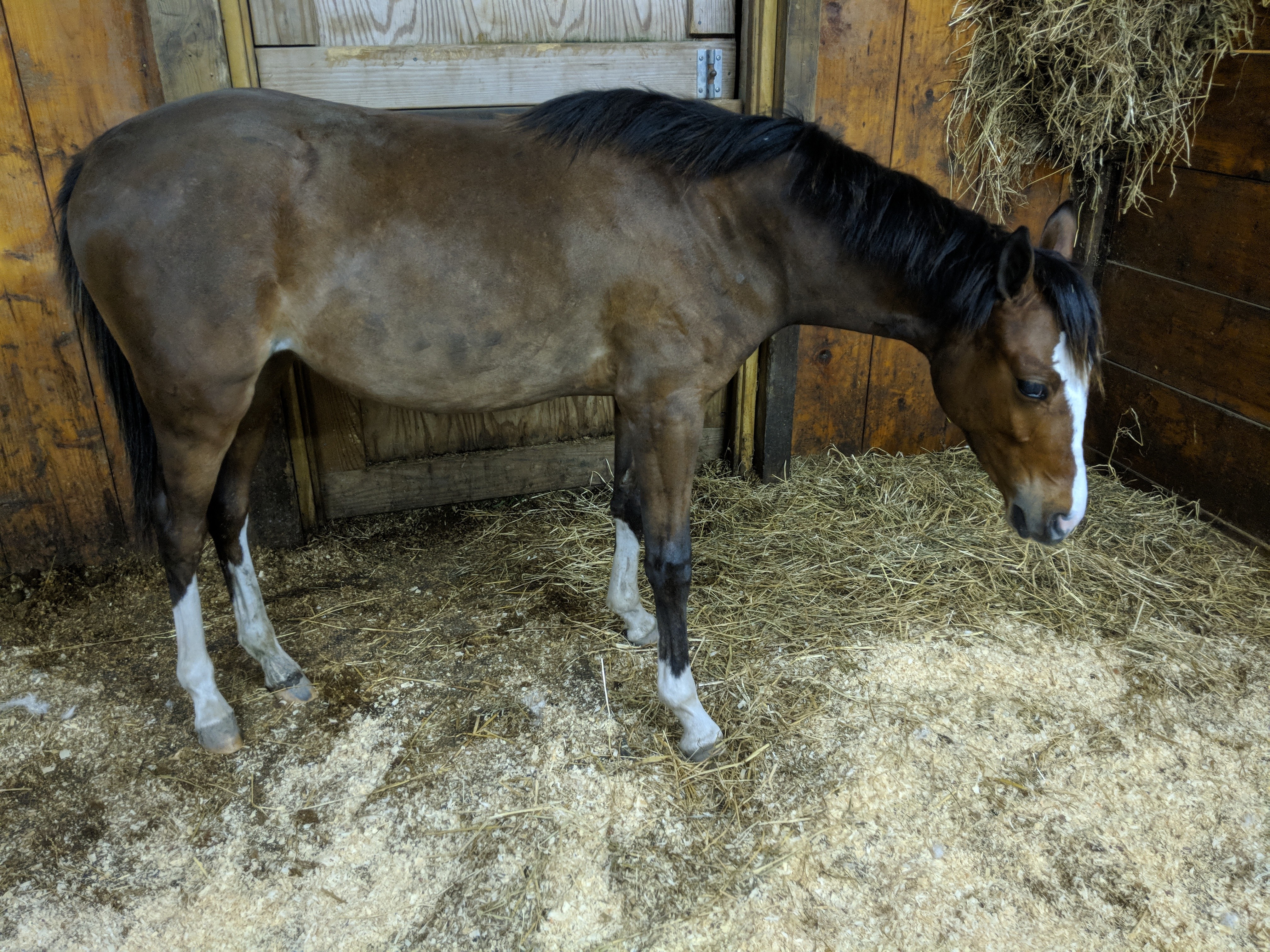 SOLD - Reynard Glam and Glitz is a 2017 reg. Part Welsh (all Welsh but grandam not registered) bay filly with more chrome than you could ask for! You WILL get noticed with her flashy looks. She will mature a good sized Medium as she is already 12.2 h at 2 1/2 years old. She is outgoing,and even handled the excitement at Devon Horse Show as a yearling easily. I've tacked her up and sat on her no problem.